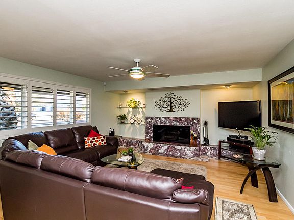 Pride of ownership shows in this well maintained, beautiful ranch style home. Bright & clean spacious layout w/updates including SS appliances w/2 convection ovens/2014. A/C & Evap cooler/2013. Gorgeous hardwood floors in living & bedrooms, 20''tile in kitchen & dining, tile bathrooms, water filtration system in kitchen, wood burning fireplace, plantation shutters, dual pain windows & skylights for natural light. All this on a large lot including a sparking pool w/pavers & resurfaced decking, RV parking and alley access. Plus a 1500 sq ft workshop w/potential to be a guest home. Owner's upkeep includes annual service to all plumbing, heating & cooling systems. If you're looking for move in ready, look no further. This home has it all. Come see for yourself and make it your own today!