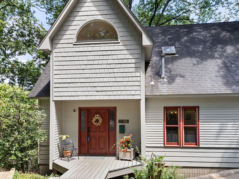 -Fabled Foxcroft-Nestled among the trees in Foxcroft this is a very special home. Built by a local architect for his own family he implemented elements of design that compliment both the bungalow style and a tree house. This house exudes the peace and calm feeling you find in nature by offering decks and large windows overlooking a wooded valley. Inside you will find a split floor plan that offers the primary bedroom privacy on the top level and a second living room and two large bedrooms on the bottom floor. This home gives you the space you have been looking for. The neighborhood is one of the most popular in town due to its location and its proximity to the Little Rock Racquet Club.