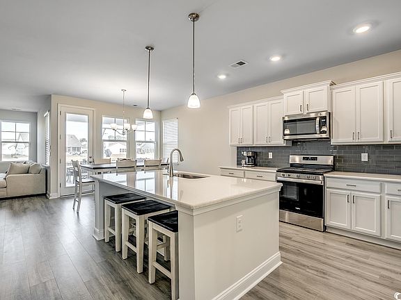 Come experience what it feels like to live in tropical paradise all year long! You will be officially on island time when you arrive at this lovely beach home located in the peaceful community of The Lakes! This beautiful Willow Oak floor plan was built in 2022, and it has a remarkable water view! Construction has been completely finished in this phase. If you're looking for low maintenance, this is the place for you. It has a Southern-style balcony where you can enjoy the ocean breeze along with a front porch where you can sit back and relax. As you open the elegant glass front door, you will notice 9ft ceilings and wide plank laminate flooring throughout the main living area. The kitchen features quartz countertops, Whirlpool stainless steel appliances, and 36" cabinets along with a big island, a farmhouse sink, pendant lights, a tile backsplash, and a large pantry. This is an energy-efficient home in a natural gas community, therefore it has a gas range, tankless hot water heater, and gas heat. This stylish home has an open floor plan with a bar, which is great for entertaining. The breakfast nook can be used as a dining area and it has a nice water view. The spacious primary bedroom overlooks the water as well. It has a tray ceiling, a walk-in closet, and an en-suite bathroom with a tile shower, dual sinks, and a water closet. This special floor plan came with an extended living room and owner's suite for additional square footage. There is a 13x11 flex room on the 1st floor that's currently being used as a workout space, but it could easily be converted into a 5th bedroom, an office, a craft area, or a formal dining room. There's a drop zone for coats and shoes beside the garage along with a separate laundry room and a powder room for guests on the main level. After you walk up the hardwood stairs, you will see a huge loft that can be used as a den or game room. The balcony can be accessed by everyone from this loft area and there's also a 9x7 space that can be used as an office. One of the bedrooms upstairs could be considered a second master, because it does have its own private bath. There are two more guest rooms on the second level along with another full-size bath. There's an attic above the 2nd floor with a pull-down staircase and plenty of storage. The covered porch in the back is a great place to grill out with friends and a 26x17 patio extension was added for extra room to spread out. The backyard is the ideal size for all your pets to play and fences are allowed. You can also have golf carts and motorcycles. This remarkable home has durable concrete fiber siding on the exterior and long-lasting architectural shingles. This is a Smart Home and you can control the thermostat, garage door, and front door lock with your phone. It comes with Alexa and a Skybell. Some of the furniture will convey and other pieces are negotiable. There's a community pool where you can take a dip or lounge around in the sunshine. It's a wonderful place to meet your neighbors. The Lakes is one of the most desirable neighborhoods in this area, and it's close to everything that the Grand Strand has to offer. There are several top-notch golf courses, delicious restaurants, and places to shop. This move-in-ready home is located in the award-winning Saint James school district. Surfside Beach is only a few minutes away along with the Marshwalk and Garden City. This one is truly a must-see, and you don't want to miss out! Schedule your showing today and don't forget to check out the virtual tour! Square footage is approximate and not guaranteed. Buyer is responsible for verification.