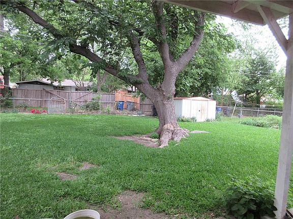 Pretty starter home has 3 nice sized bedrooms and one big bath. Dining area AND cozy breakfast nook with view of big backyard trees and flowers. 2 very generous living areas, one area is den-family room. The convenient open Kitchen is located between the breakfast nook and the dining room. The Separate laundry accommodates full size washer & dryer and contains extra storage space. This home has beautiful flowering landscape and a HUGE shade tree next to the covered patio. Another plus: a metal backyard shed. Very affordably priced. Make this your dream home. Walk to churches, schools, shopping and also restaurants. Cash or Conventional Financing.