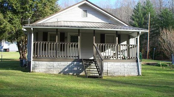 Cozy cottage with eat-in kitchen, living room and 2 bedrooms. Home has 812 sq. ft. Great view from both front and back porch. Has 4.89 acres with wooded acreage across road from home included as part of the property. Could be a great rental, weekend getaway or summer home. Home has new metal roof.