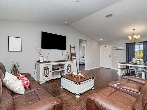 Nestled in a wooded setting, this 3/2 charmer will not disappoint. Screened front entry, trussed screened lanai with lots of room for a pool, fire pit and all your outdoor toys. Energy smart features throughout, with digital thermostat, 14 SEER rated heating, ventilation & A/C system, roof vent and sofit for attic vent. Dual pane energy efficient low E windows, granite counter tops, stainless steel appliances and enhanced vinyl plank flooring complete this quality constructed concrete block home.