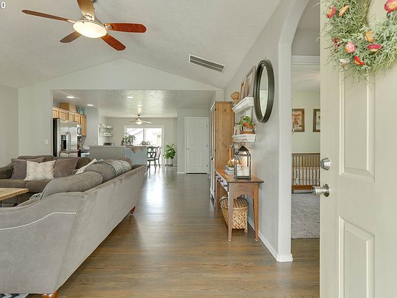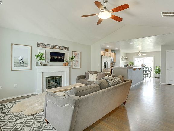 Lovely one-level home in north Newberg! Perfectly situated between two fantastic parks (Tom Gail Park & Oak Knoll Park). Sit and enjoy the sweet covered front porch. Updated great room floorpan with 3 bedrooms, 2 full bathrooms. Hardwood floors in the living room, kitchen and dining room. Gas fireplace. Fenced backyard with extra large patio, tool shed and sprinkler system. Extra deep garage. New roof/new furnace. All appliances stay.