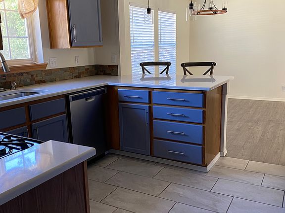 Move-in Ready & Perfectly Located! This single-level home offers comfort, convenience, and an ideal location in a quiet cul-de-sac, just block from a large park and playground, and near shopping and medical services. Key Features: 1. Bedrooms and Bathrooms: Featuring three spacious bedrooms and two full bathrooms. 2. Renovated Kitchen: The fully renovated kitchen comes equipped with modern appliances, including a dishwasher, gas range & oven and flows seamlessly into the living area adorned with a cozy gas fireplace. 3. Flooring: A mix of laminate, ceramic tile, and NEW carpet flooring provides both style and practicality. 4. Master Bedroom: Includes a walk-in closet, and En Suite full bathroom. 5. Included Amenities: A washer and dryer are included for your convenience. 6. Parking and Storage: You'll appreciate the attached double garage, which includes shelving, a workbench, pegboard, and a garage door opener. There is also additional off-street parking adjacent to the driveway. 7. Outdoor Space: The back patio looks out into a private, fenced yard with mature trees for shade, a sunny spot with raised garden beds, and in-ground sprinklers. Perfect for a small pet or outdoor activities. 8. Additional Upgrades: Extensive upgrades include the kitchen, dining, and living rooms to an "open concept" with laminate and ceramic flooring, a kitchen bar, upgraded lighting, cabinets, and quartz countertops. Upgraded fixtures, and a garbage disposal are also included. 9. HVAC: The house has a heat pump for air conditioning. 10. Homeowners Association: Please respect the Homeowners Association rules and bylaws, which cover yard maintenance, RVs, utility trailers, and garbage cans. These documents will be included in the lease agreement. We don't accept cats, but small dogs will be considered with an additional deposit. Don't miss out on this beautiful home. Contact us today to schedule a viewing and make it your new home! Renter is responsible for power, electricity, water/sewer, and garbage service. Renter is responsible for maintaining all yard and landscaping.