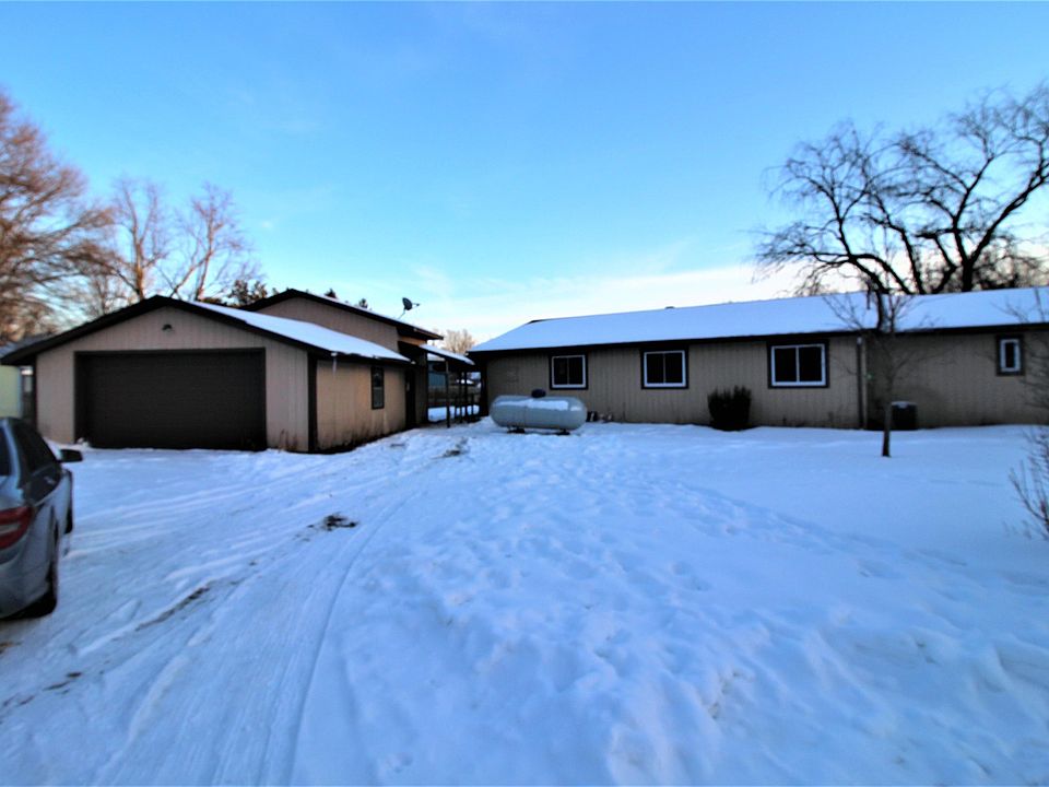 Large rambling ranch on quiet secluded spot off the road. Huge two stall garage with above storage. 3 bedrooms 2 full bath. New fixtures throughout. Over 1700 sq ft of living space and the home has some handicap accessories including a zero threshold shower, a ramp to side door and off the back deck and an elevator to the basement.