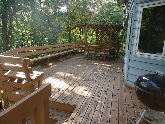Large 2 story house sits on 1.73 acres. 6 bedrooms. Large entry. Main floor features living room, family room with fireplace, formal dining room as well as eat-in-kitchen with beautiful bay window, laundry room, 1/2 bath and additional bedroom/office. Sliding glass door off of family room leads to large deck overlooking wooded area. Upstairs include master bedroom includes fireplace, full bath, and sunroom with gorgeous view. Additional 4 bedrooms plus 3/4 bath on same level. Walk out basement is approximately 700 sq. ft. includes entertainment area, fireplace, wet bar and 3/4 bath. 2 car attached garage.