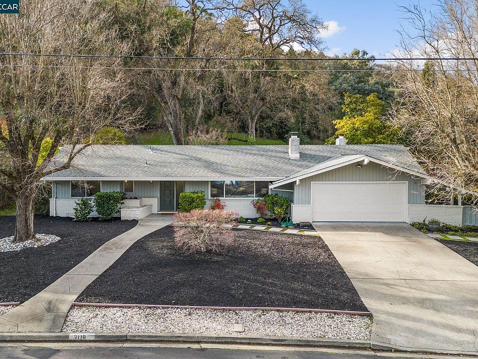 Welcome to this charming rancher nestled in the highly sought-after Westside Alamo, making its first ever debut on the market! Situated on a over a half-acre lot, this property presents many opportunities for expansion, ADU or pool. This home features brand new LVP flooring throughout, new carpet & all new interior paint. Step into the front-facing living room, where vaulted ceilings, exposed wood beams & a classic brick fireplace create a warm atmosphere. The formal dining room has convenient access to the back patio that flows into the kitchen. The well-appointed kitchen boasts a breakfast bar, granite counters & SS appliances. The oversized family room, adorned w/ a raised brick fireplace & a sliding glass door leading to the backyard, offers a perfect space for entertainment. Down the hall, discover the primary bedroom w/ an ensuite, 2 secondary beds & an updated hall bath. Additional highlights: a 2-car garage & designated laundry room w/ outdoor access & sink. Bask in the sunshine or savor al fresco dining on the spacious patio overlooking the expansive backyard, which holds endless potential for a pool, sport court or an ADU. Conveniently located right around the corner from the Iron Horse Trail & in close proximity to Alamo Plaza, top-rated K-12 schools, parks & 680 FWY.