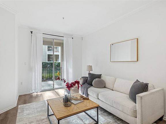 WELCOME HOME to this beautifully remodeled Astor Court floor plan in the exclusive Watermarke Community, nestled in Irvine’s sought-after Business District. Offering a private and tranquil setting, this 1-bedroom, 1-bath residence spans 650 sq. ft. of thoughtfully designed living space. Step inside to discover luxury vinyl wood flooring, elegant crown molding, and a neutral color palette that creates a warm and inviting atmosphere. The gourmet kitchen features professionally appointed granite countertops, while the spacious bathroom is equally well-appointed with refined finishes. The bedroom retreat boasts a walk-in closet with built-in organizers, and additional storage is provided by a convenient entryway coat closet. An in-unit laundry closet with a new washer and dryer adds to the home’s practicality. Enjoy the convenience of reserved parking in the gated garage and experience resort-style amenities, including three pools (one Jr. Olympic-sized, heated year-round), four spas, a state-of-the-art fitness center, private movie theater, a game room, business center, plus indoor basketball and tennis courts. Ideally located just minutes from Orange County Airport, UCI, major freeways (405 & 73), world-class dining, shopping, and the San Joaquin Nature Preserve, offering scenic biking and walking trails. Don’t miss this opportunity to own a piece of luxury in the heart of Irvine!