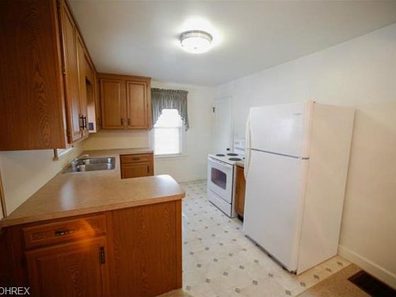 What a fantastic home! There are not many homes in this price range that can prove to be move in ready but this is one! Everything is clean and neutral and ready for the next owners. Such a cute front living room that you can make your own. The kitchen space is great and opens up to a nice sized dinette area to accommodate friends or family. The kitchen cabinets have been nicely refaced and all the appliances will stay with the home. The kitchen flooring is newer as well along with the countertop and sink. On the first floor is a spacious bedroom with walk in closet along with a bright and clean full bath. The full bath was updated in 2008. On the second floor is a large second bedroom that could be the master bedroom or easily work for kids to share. The basement provides lots of room for storage and a laundry area with the washer and dryer included. From your dinette area, step out to a covered patio leading to a one car garage. The yard is easily maintained but still provides room for pets, children, and outdoor living. Updates and improvements include windows, flooring, appliances, furnace, roof (approximately 10 years old). Such a great home!