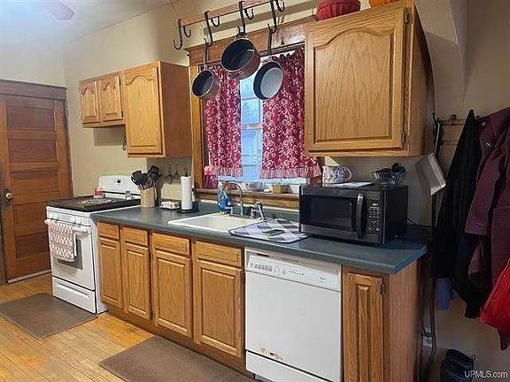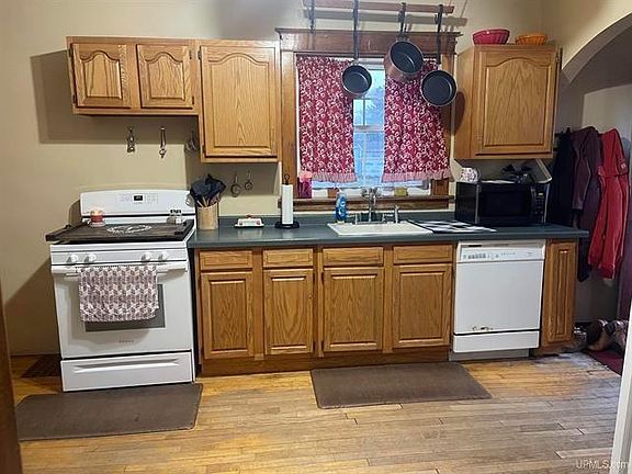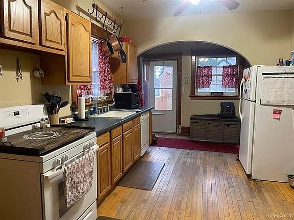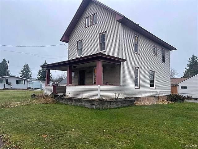 Charming 4-bed, 1-bath home with formal dining, original woodwork, and hardwood floors. High ceilings enhance the spacious feel. Appreciate the maintenance-free exterior, covered front porch, back deck, and blacktop driveway. Conveniently located near downtown, snowmobile trails, and the non-motorized Iron Belle.