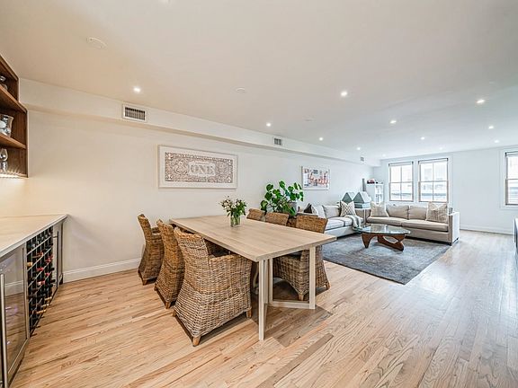 Tucked away on a quiet, green, tree-lined street in the heart of Downtown Jersey City, 312 5th Street offers the perfect blend of peaceful residential living and vibrant urban convenience. Just a short walk to the Grove Street PATH station and mere blocks from the expansive Hamilton Park—with its playgrounds, tennis and basketball courts, dog runs, and open lawns—this home truly places the best of city living right at your fingertips. This beautifully designed 3-bedroom, 2.5-bathroom duplex features a chef’s dream kitchen adorned with Caesarstone countertops throughout the kitchen and custom bar area, a professional-grade 6-burner, double-oven WOLF range, complete with warming lights and exterior-vented hood system, Subzero refrigerator with ice maker, and custom cabinetry. Upon entering, you’re greeted by a dedicated, light-filled mudroom that leads into the south-facing main living space, allowing natural light to pour into the home all day long. Just off the kitchen, step out through a brand new Marvin sliding glass door onto a private deck that overlooks the embankment—perfect for quiet outdoor dining. The deck also features a built-in gas line for grilling. Inside, no detail has been overlooked. High-end recessed lighting, custom doors, and Kohler fixtures bring elevated design throughout. A dedicated office with a glass door and window provides the perfect work-from-home setup. Storage is never a concern, with custom closets throughout, including walk-in closets in both the primary and secondary bedroom. A true rarity in the area, this property includes a private, pull-in one-car garage with an oversized 10-foot solid wood garage door and a new (installed in 2024) heavy-duty Liftmaster opener, along with new custom storage systems added in 2025. Entry through the garage leads directly into the downstairs vestibule for ultimate convenience. Finally, head up to the roof where you can enjoy stunning, unique views of the cityscape—a perfect finishing touch to this exceptional home. See broker remarks for additional info on prior deck structure that was taken down. Every element of this residence has been thoughtfully crafted with quality, style, and comfort in mind. Welcome to the rare gem that is 312 5th Street.