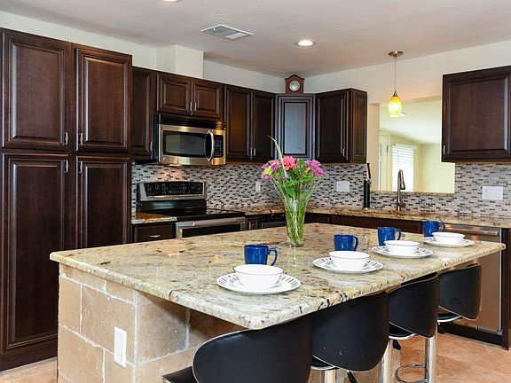 A very popular greatroom plan with four bedrooms and two baths in Manatee Palms. This home was lovingly restored in and out! Some of the special features include hurricane windows, a new air conditioning system, granite counters, stainless appliances, a tankless water heater, new bathrooms and travertine flooring throughout. There is a large bonus room as well which could double as a dining room or play room. And there is room to roam in the large fenced yard, complete with a utility shed. The master bedroom has a jet tub, dual vessel sinks, and a marble shower. This community is in a GREAT school district. Centrally located and just a short stroll to Bennett Park and close to I-75 Lakewood Ranch and the UTC Mall. You must see this home! Call Nicholas Hernandez at 850-322-5597 to schedule a showing.