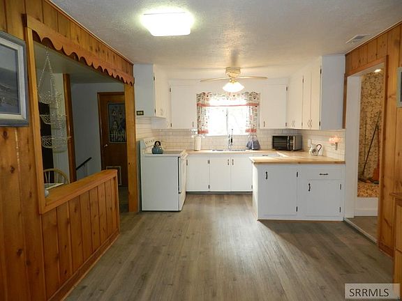Lovely home offers a spacious floor plan, upgrades from roof to basement that combine traditional detail with modern style. This ranch-style 1,590sqft 3-bed 1-bath includes new PEX plumbing, fixtures, and water heater. The kitchen with all new counters combined with farm sink, and glass top range offer ample space for all your cooking needs along with two separate dining areas that flow to the living room. Living room has large picture windows that offer great views of mountains and valley, and bring in great light at every season. The main level has a large master bedroom, full bath, laundry with additional storage area and two guest bedrooms. Flooring includes new carpeting in the living room and LVP flooring in kitchen, dining rooms, bathroom and pantry, original wood floors in two of the bedrooms, brand new entry tile and wall tile behind pellet stove. Energy-efficient features include all new lighting, propane air forced furnace, pellet stove, and a wood-burning fireplace. Storage is ample with lots of built-in cabinetry between the main level and finished basement. The huge lot offers ample parking for your RV and toys, various outbuildings, with plenty of area for gardening. Move-in ready. Call for a tour today!