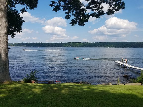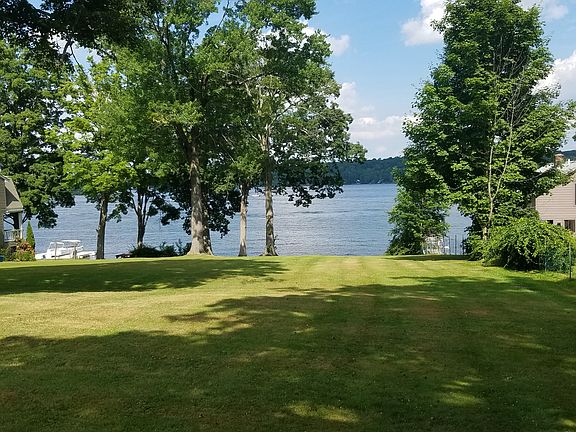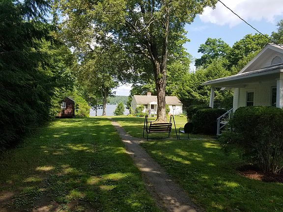 Charming 20th century bungalow anchors this Bantam Lake compound with TWO additional houses. Bright and sunny 1.6 acre lot with direct waterfront, major eastern views. Wide and open grassy lawn slopes to water with concrete and stone seawall. Steps to dock location. Three bedroom bungalow has great bones, stone fireplace, covered porch, attached three car garage. Second home is currently rented - two bedrooms, full bath, enclosed porch overlooking lake, classic pine paneling. Third cottage - two bedrooms, full bath, not winterized. Shed for storage. Very rare to find a three dwelling compound all on town sewer with waterfront. Multiple options: personal use, rental income, or build your dream lake house. VIEWS cannot be beat - property on "50 yard line" of Connecticut's largest natural lake.