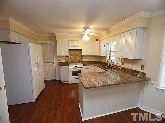 Charming traditional home nestled on very private homesite in community just minutes to 540, Whole Foods, shopping & dining! Updated kitchen with crisp white cabinetry & granite counters. Casual dining area overlooks the lush backyard. Family room anchored by masonry fireplace. Four generous size bedrooms. Finished bonus in third floor. Wonderful screen porch & large yard. Home is priced to reflect the opportunity to add your personal touches.