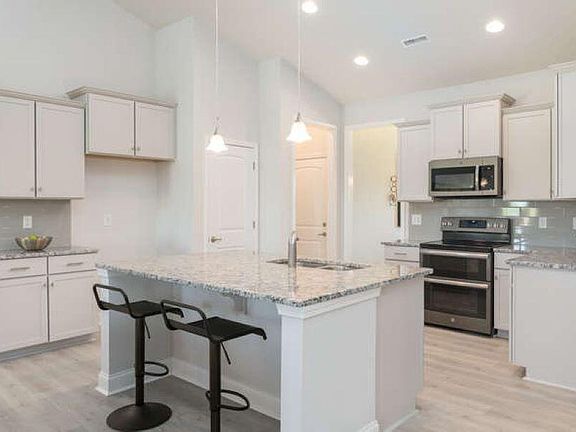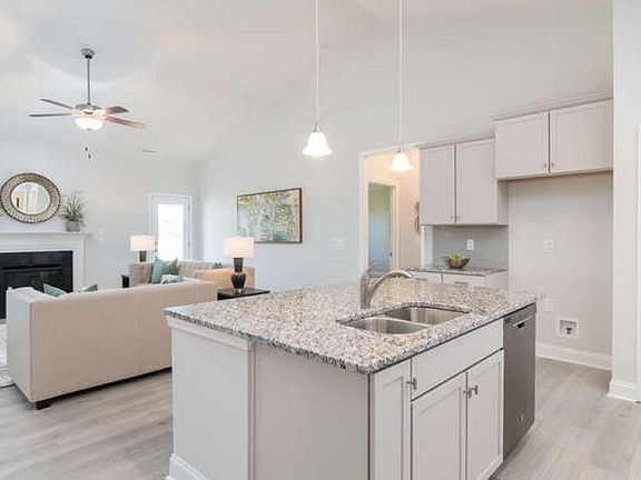 Located 3 miles from Downtown Sanford, 45 min from Fort Liberty and under an hour from RTP, this beautiful 2100sq.ft. plan with 4 Bedrooms and 2 Bathrooms offers you the flexibility you're looking for in your new home. The spacious Kitchen comes with a Tile Backsplash, Granite Countertops, upgraded Stainless Steel appliances, and gorgeous upgraded Cabinets. You will find plenty of space to feed everyone in the Formal Dining Room that's equipped with a Tray Ceiling that's highlighted with Crown Molding and the walls decorated using Wainscoting. The Family Room comes with a Gas Fireplace that everyone can gather around during the colder months. The Owner's Suite also includes a Tray Ceiling complete with Crown Molding and a spacious WIC. The Bathroom features a Cultured Marble Double Vanity, a Walk-In Tile Shower, and a luxurious Soaking Tub. The 3 Secondary Bedrooms provide the rest of your family and guests a private space to stretch out and relax. Additional features include Laminate flooring in all main living areas and windows in the top panel of the Garage Door. Reach out to the onsite New Home Sales Charlotte Gregory at 919-802-1800 to schedule a showing and ask about our current incentives.