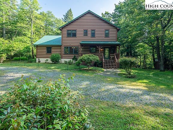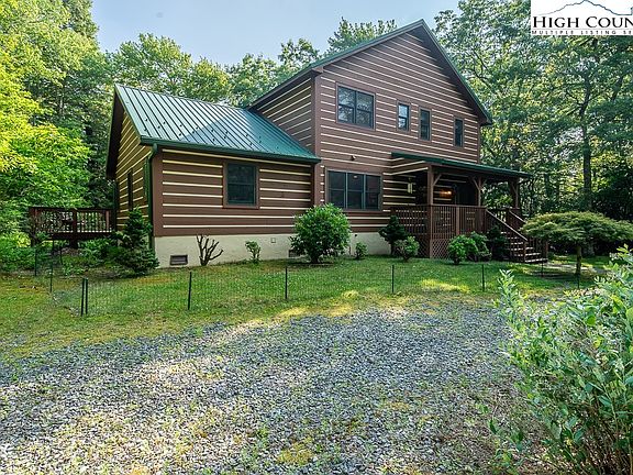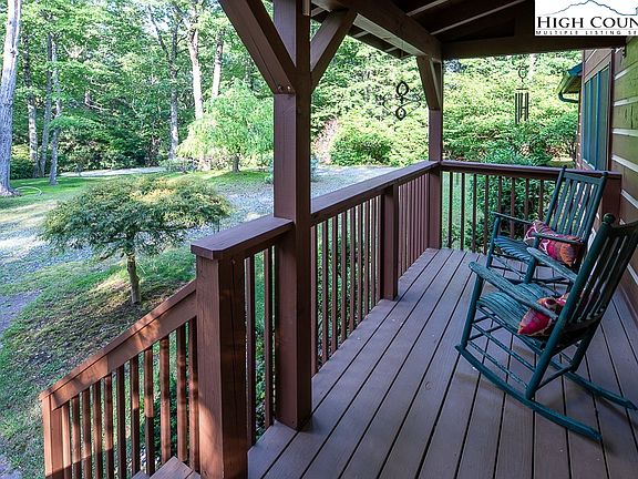 Relax in comfort while you enjoy mountain living at its finest in this lightly used 3 bedroom, 2 1/2 bath log home on a large level lot just minutes from Boone and/or Blowing Rock. Over 2 acres of privacy and within walking distance of the Blue Ridge Parkway; you'll still enjoy easy access year round. The cook's kitchen offers stainless appliances, granite counter tops, professional 6-burner Viking range and exhaust hood. Primary bedroom/bath is on the main level with double door access to the back deck, and whirlpool tub in the ceramic-tiled master bath. Relax and entertain on the huge back deck with outdoor woodburning fireplace. Immaculate and move-in ready, with hardwood, ceramic tile and berber carpeted floors. Neutral paint colors complement tongue and groove knotty pine wood walls and flat-sided interior logs; a beautiful soaring stone-finished fireplace in the 2-level great room. Air conditioned for year round comfort. Perfect as primary residence or vacation get-away.