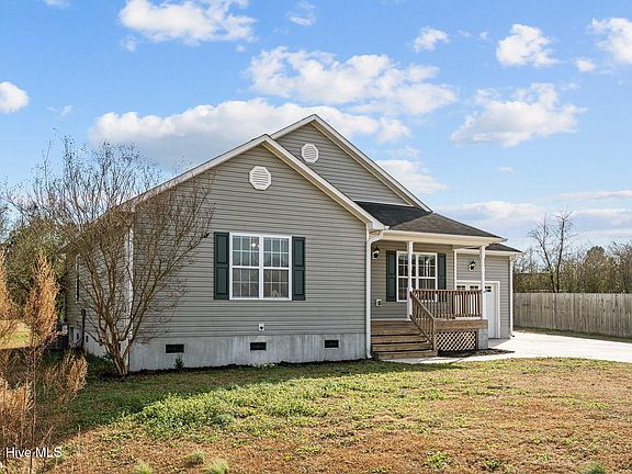 This single-story home at the end of a cul-de-sac sits on a large 0.79 acre lot, with NO CITY TAXES, and NO HOA in the quiet neighborhood of Killis Hills in Richlands. Featuring three bedrooms, two baths, and one-car garage this is all the space you need. The living room is centered by a cozy fireplace and flows nicely into the breakfast nook and kitchen. The kitchen has plenty of cabinet/countertop space and is equipped with stainless steel appliances. Outside there is a large covered front porch and newer back deck overlooking the large, private backyard. Less than a 40 minute drive to all area Military Bases, and less than 10 minutes from the Walmart and Starbucks in Richlands. This home is clean, vacant, and move-in ready for its new owners- schedule your personal showing today!