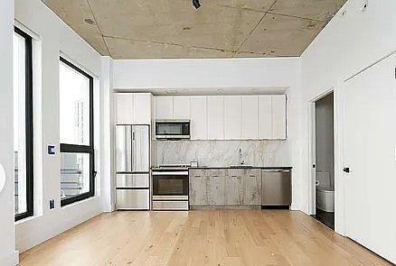 Introducing 312 Broadway, Brooklyn's finest boutique rental development consisting of sleek and spacious studio, one- and two-bedroom residences with generous layouts, striking interiors and exceptional amenities amongst Williamsburg's sophisticated and flourishing south side. Surrounded by a diverse array of parks, shops, restaurants and nightlife, 312 Broadway offers the unparalleled urban lifestyle package in the heart of the borough's best neighborhood. Unit 5E is an Industrial chic living space, with an expansive city view. One of the most coveted units in the building, this Northwest facing unit, features white oak hardwood floors, 11' exposed concrete ceilings, electric vented washer/dryers and imported triple-paned tilt-and-turn sound engineered windows for abundant natural light and whisper-quiet tranquility. Contemporary kitchens, designed with practicality and beauty in mind, offer GE stainless steel appliances and dramatic drip pendant lighting, while black Caesarstone countertops set against white melamine cabinetry adds an element of striking ambience. Outfitted with polished chrome fixtures and full white subway tiled walls, soothing monochrome bathrooms include [deep soaking tubs], [rainfall steam showers] and custom mirrored vanities with plenty of storage space. Experience the best of modern boutique living with a virtual doorman, elevator, individual bicycle storage, *private onsite parking with electrical charging ports and landscaped common roof deck with spectacular views of the Manhattan skyline and magnificent Williamsburg Bridge. The J, M Z trains, located seconds away from your front door, offer a swift and easy commute into Manhattan.