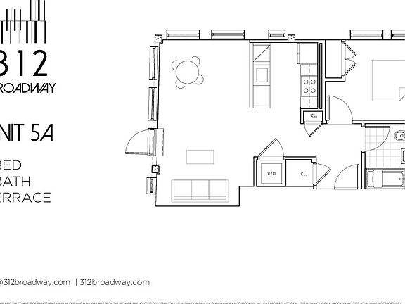 Introducing 312 Broadway, Brooklyn's finest boutique rental development consisting of sleek and spacious studio, one- and two-bedroom residences with generous layouts, striking interiors and exceptional amenities amongst Williamsburg's sophisticated and flourishing south side. Surrounded by a diverse array of parks, shops, restaurants and nightlife, 312 Broadway offers the unparalleled urban lifestyle package in the heart of the borough's best neighborhood. Unit 5A is an Industrial chic living space, and an expansive private outdoor terrac. The unit, features white oak hardwood floors, 11' exposed concrete ceilings, electric vented washer/dryers and imported triple-paned tilt-and-turn sound engineered windows for abundant natural light and whisper-quiet tranquility. Contemporary kitchens, designed with practicality and beauty in mind, offer GE stainless steel appliances and dramatic drip pendant lighting, while black Ceasartstone countertops set against white melamine cabinetry adds an element of striking ambience. Outfitted with polished chrome fixtures and full white subway tiled walls, soothing monochrome bathrooms include [deep soaking tubs], [rainfall steam showers] and custom mirrored vanities with plenty of storage space. Experience the best of modern boutique living with the impressive set of amenities offered, including a virtual doorman, elevator, individual bicycle storage, *private onsite parking with electrical charging ports and landscaped common roof deck with spectacular views of the Manhattan skyline and magnificent Williamsburg Bridge. The J, M Z trains, located seconds away from your front door, offers a swift and easy commute into Manhattan. *Available for a fee