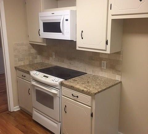- Kitchen: Counter Tops-Granite, Floors-Hardwood, Backsplash-Tiled, Cabinets-Painted
