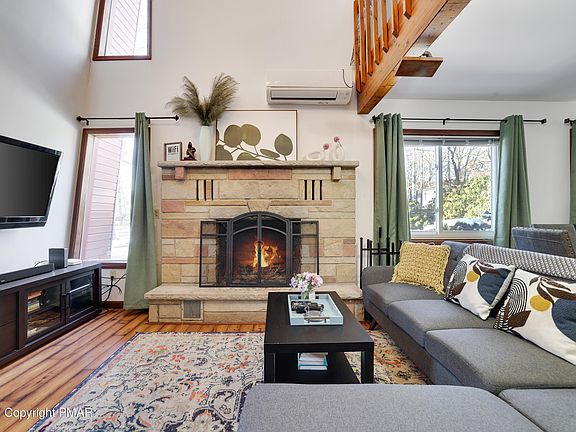 HUGE PRICE DROP - BEST DEAL IN THE MOUNTAIN! Do Not Wait to See This Fully-Furnished Short-Term-Rental Friendly Property w In-Deck Pool Backing to State Gamelands in Low-Dues & Regs Pocono Farms East! Just moments from Kalahari Indoor Water Park and Convention Center, downtown Mt Pocono, and Camelback Mountain Resort this 3+ bedroom, 2 bath home is the perfect, turnkey getaway. Enter paved drive and into vaulted ceiling main space. Cozy up next to wood burning fireplace flanked by large windows to watch the snow fall outside. Separate game room opens to expansive deck for outdoor summer fun. Modern finishes including hard-surface flooring, fresh paint and ductless AC/Heat throughout. Bedroom on main floor, large bonus sleeping loft and two addt'l beds upstairs. Ultra low taxes and dues keep cost of ownership low. Nothing Else At This Price-Point That's Fully Furnished, Has a Pool & Is Short-Term-Rental Friendly. Will Go Quick At This New Price-Point - Call Today to Schedule Your Private Tour!