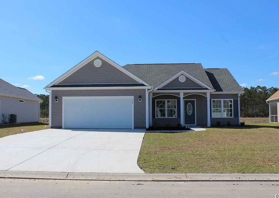 Popular 3 bedroom Pecan floor plan, relaxing front porch, rear screen porch and patio. Open floor plan, dining area, living room has vaulted ceiling, ceiling fan, large kitchen has lots of solid wood cabinets with crown molding, breakfast counter, stainless steel appliances - microwave, smooth top stove, dishwasher, and pantry closet. Split bedrooms - Master suite has vaulted ceiling with ceiling fan, large closet, double sink in raised height vanity, 5' walk-in shower, linen closet and window to let the light in. Guest bedrooms and bath on opposite side of the house. Wood look vinyl flooring in dining room, living room, kitchen and hall. Spacious finished/painted 2-car garage, with automatic door opener, pull down stairs to attic storage above and a side door. Irrigation system, gutters, mailbox, sodded and landscaped yard. Community pool. Award winning local builder. Aynor Schools. Less than 1 mile to Hwy 22, within 30 minutes of Myrtle Beach. Photo's and video are for illustrative purposes only and may be of a similar home built elsewhere. Square footage is approximate and not guaranteed. Buyer is responsible for verification.