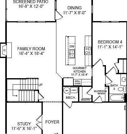 The heart of the home, the gourmet kitchen, is designed for those who love to cook and entertain. Its open layout flows seamlessly into the main living area appointed with plentiful windows & fireplace, making it ideal for gatherings and family time. The study featuring French doors provides dedicated space for work or quiet reflection. Need some fresh air to unwind – the screened patio may be your preferred retreat. The first-floor guest suite is perfect for visitors, offering them comfort and privacy. The oak tread stair ascends to the primary bedroom accented with tray ceiling and tranquil luxury bath. You will be delighted by the spacious secondary bedrooms w/ walk in closets Meanwhile, the upper flex area provides endless possibilities providing the space to easily adapt to your family’s needs.