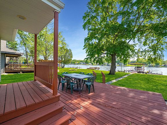CHECK OUT THIS INCREDIBLE RIVERFRONT PROPERTY, WITH FRESHLY PAINTED WALLS CREATING A BLANK CANVAS FOR ALL YOUR VISIONS TO CREATE THE PERFECT HOME! This very well maintained home features 3 bedrooms, 2.5 bathrooms, first floor laundry and a mud room entry way. Up to the loft features a spacious master bedroom with 2 large closets and a master bath that is just waiting to be transformed into your ultimate relaxation oasis. Open-concept main floor, with cathedral beamed ceilings. The living room/dining room is adorned with a wood-burning fireplace, framed by a white washed stunning stone wall and the most beautiful views of the FOX RIVER. The real gem of this property is what is awaiting you out front, 50 Feet of water frontage situated on the FOX RIVER. Located in a wake zone, north of the Dam and close to the river walk. There is also a concrete seawall, a double pier that has room to dock three boats, 2 lifts (One crank one electric) and a wood boat house to protect your boat from the elements. The 2.5 car garage is not just for your vehicles - it's a haven for your golf cart and other toys, complete with a side overhead door for easy access. Above the garage, discover additional storage space in the attic. If you're looking for your forever home, a weekend getaway home, a summer home or even an Airbnb then don't miss your chance to make this FOX RIVER gem your own.