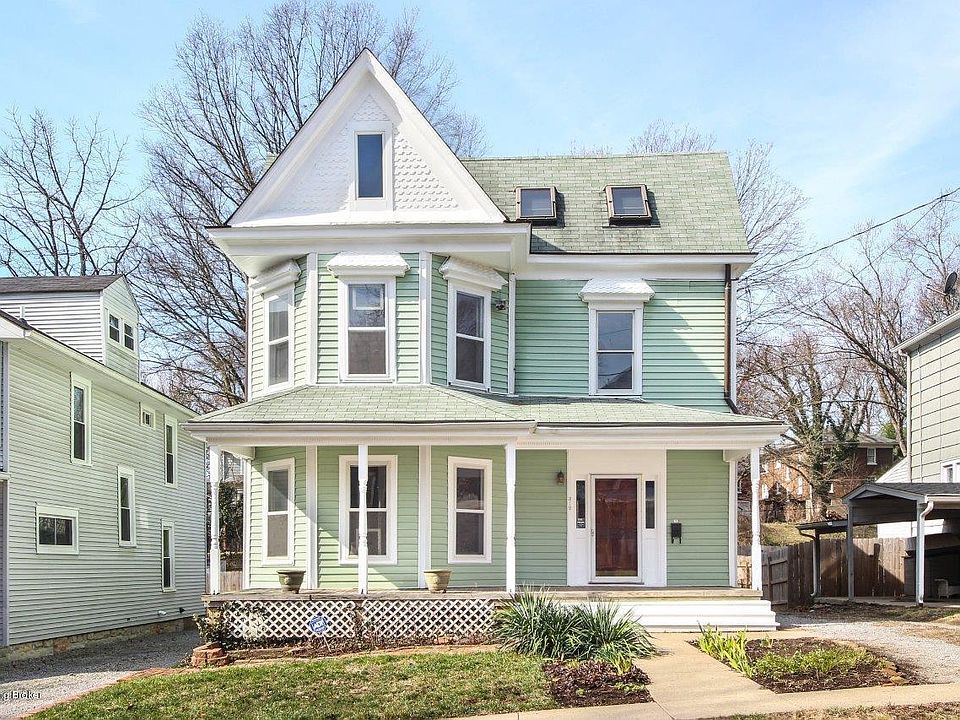 Spacious Victorian in Crescent Hill - just a block from all that Frankfort Avenue has to offer! First floor has a welcoming foyer with a handsome staircase, a large living room with built-in bookcases, a charming dining room featuring decorative fireplace and an eat-in kitchen with attached laundry room. The kitchen has a convenient pass-through into the living room. Beyond the kitchen is a screened in porch and large deck that overlooks the park-like back yard. The second floor includes 3 bedrooms, a full bath with clawfoot tub, a private balcony and a large additional living space with an antique spiral staircase leading to the third floor. This space has been renovated to function as a private bedroom suite, but could function well as an office, or additional living space. There is a full bath, plenty of storage, skylights, and tongue & groove ceilings that add to the ambience of this unique space. Some of the recent updates include HVAC 2016, sump pump 2016, exterior paint 2019, interior paint 2020.