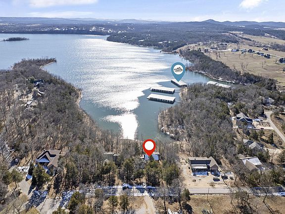 Dreaming of a Cabin in the woods lakefront escape on Table Rock Lake? This rustic yet elegant log cabin is the perfect blend of charm and modern comfort, nestled in the woods with easy access to a 10x28 boat slip with lift ( extra $$$) nearby and a gentle walk to the water. Located in a desirable neighborhood with a community swimming pool and extra trailer parking, this home offers the best of lake life with added conveniences.From the covered front deck with fenced yard, Step inside to discover an enchanting interior featuring 20-foot open-beam ceilings, shiplap walls, and stunning wood floors. The centerpiece staircase boasts live-edge woodwork, adding to the cabin's rustic allure. Natural light floods the space through a wall of windows, offering views of the lake and surrounding forest.The heart of the home is the dream kitchen, complete with new stainless steel appliances, granite countertops, a butcher block island, and sleek new cabinetry. Whether hosting a gathering or enjoying a quiet meal, this kitchen is as functional as it is beautiful.There's room for everyone in this spacious home! The loft provides a cozy retreat, while the walk-out basement features a generous family game room, two additional bedrooms, a full bathroom, and plenty of storage space. Step onto the covered back deck to soak in the serene atmosphere or take a few steps down to the water's edge.This home is truly a private haven, completely tucked into the woods for ultimate tranquility, yet conveniently located across the street from the community pool. With its combination of rustic charm and modern amenities, this log cabin offers an unparalleled opportunity to experience lakefront living at its finest. Don't miss your chance to own this exceptional property--schedule your private tour today!