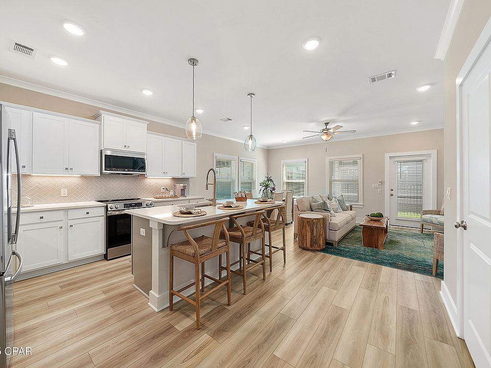 NO RENTAL RESTRICTIONS!!! Our stunning pool is NOW OPEN! The prefect place to SOAK UP THAT Florida SUN! Seagate at Clara is a new townhome community nestled in the vibrant city of Panama City Beach, FL. This two-story unit features board and batten exterior and covered entries. One car garage provides a great space for storing beach essentials. This open concept townhome boasts a stylish kitchen with white cabinets, tile backsplash, a large island with quartz counter tops - perfect for entertaining. The elegant Owners Suite is designed with comfort in mind showcasing a large walk in closet and double- bowl vanities. Main Bath has tiled shower. All bathrooms have quartz countertops. LVP is located throughout the home. The community pool features a cabana, lounging, seating and grilling stations. This community has a dedicated dog park. Seagate at Clara is in a prime location, approximately 1.4 miles to the sandy beaches and just minutes from Pier Park.