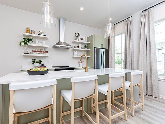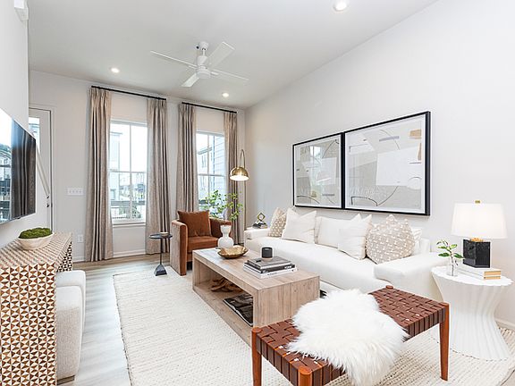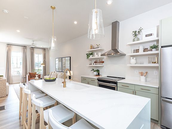 The Middleton floor plan seamlessly combines style and functionality. The open-concept middle floor, with an oversized kitchen island and covered porch, is perfect for entertaining. The spacious kitchen connects seamlessly to the family room and features a built-in pantry for ample storage. The top floor offers a private owner's suite with a luxurious bath, with a secondary bedroom and bath for guests or roommates. A two-car garage on the first floor adds convenience to this well-designed townhome.