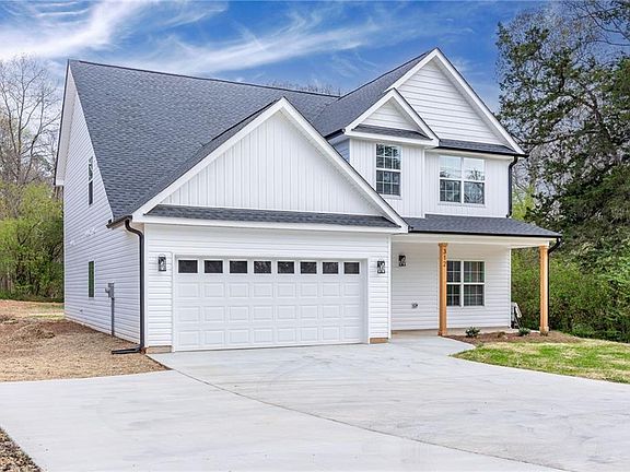 BRAND NEW CONSTRUCTION near Guilford College! Beautifully built with covered front porch. Large lot – over .5 acre. Bright open floor plan. 4 bedrooms, 3.5 bathrooms. All bedrooms are large with large closets. Open kitchen with granite countertop, s/s appliances, pantry. Spacious living room. Formal dining room. Main level primary bedroom suite with 2 walk-in closets. Primary bathroom with double vanity, separate shower and garden soaking tub. Upper level has huge bonus room and 3 additional bedrooms. Two more full bathrooms upstairs with granite counters and tile floors. Enjoy the large patio and private backyard. 2 car garage. Convenient location near shops, restaurants, and highways. All specs per builder