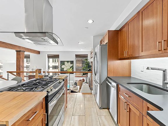 Welcome to this elegant, beautifully decorated, charming two bedroom, two bathroom home in a unique, pre-war loft condominium. Sun-filled sunken living room / entertaining space with 10 feet ceilings, exposed brick walls, original wood beam and a wood burning fireplace. The chef's kitchen is equipped with custom cabinetry, granite counters, and GE Profile stainless steel appliances including a wine cooler. The bedroom suite has a walk-in closet, separate dressing area, and en-suite bathroom. There is a den / second bathroom. There is central AC, an abundance of closets and a washer/dryer. 312 East 22nd Street is a well-maintained, boutique condominium located in a highly desirable neighborhood with fabulous dining, shopping, entertainment, and all modes of transportation.