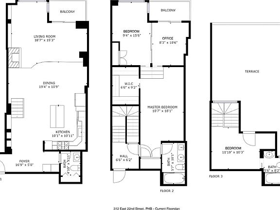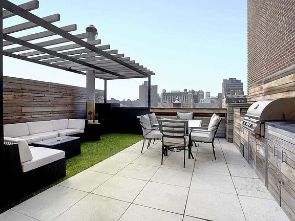 Welcome home to your Gramercy Park triplex with outdoor space on every floor. Enter through the foyer to a bright open concept living, dining, kitchen flow. Ideal for both everyday living and luxe entertaining. Fill your space with light from the floor to ceiling windows by day and cozy up to the fireplace by night. Follow the floating stairs to the master bedroom and private home-office (or 2nd bedroom) boasting balcony access. Walk-in closet, custom built-ins and skylight make this space one of a kind and uniquely multi-functional. Continue to the third floor to find a well appointed guest suite with full bath and custom closet cabinets, as well as access to the over-sized private roof terrace with built-in bar, grill, and pergola. From top to bottom this home's artisanal craftsmanship and open flow floor plan make it every bit the luxury living we expect from a New York City penthouse apartment.