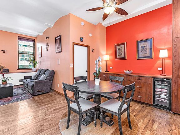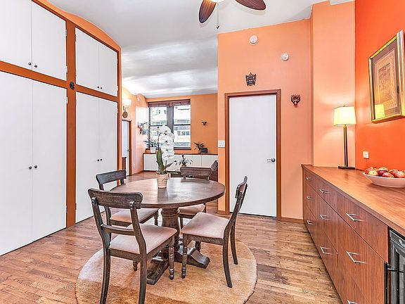Welcome to this beautifully renovated Gramercy Park loft, blending luxury and comfort with great light & views of the Empire State Building. This unique residence features soaring barrel-vaulted ceilings, rich hardwood flooring, and custom-crafted wood media cabinetry in the expansive living area. Enjoy surround sound speakers for an immersive experience and a dining area equipped with a custom wood credenza and wine cooler, perfect for entertaining.