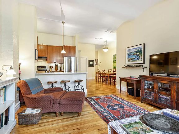 Everything on the checklist! Views, Washer/Dryer, Unlimited Subleasing After 1 year! This expansive two bedroom, two bath home has a terrific layout featuring soaring barrel vaulted ceilings and white exposed brick walls. Offering a spacious living room, separate dining area and a gallery style foyer, this bright and inviting home also has windows on 3 sides with primary exposure to the north. The open kitchen has been thoughtfully designed and has stainless steel appliances and tiled backsplash, along with an abundance of cabinetry. The ample living and dining areas are perfect for entertaining, while additional features include gleaming wood floors, in unit WASHER/DRYER and an abundance of closets. The primary bedroom suite features a renovated full bath, large closet and quiet exposures. The Foundry, a prewar converted factory building, features a planted and furnished roof deck with grill, bike room, storage, common laundry, resident superintendent and video intercoms. This friendly CONDOP allows co-purchasing, pied-a-terres and gifting. The Foundry also allows unlimited subleasing after one year of residency. Pets are welcomed. 80% Financing. Maintenance Includes Cable/Internet.