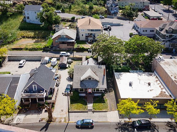 Charming 1920 Craftsman bungalow brimming with potential and character, ideally situated in the heart of downtown, directly next to Shannon's Ice Cream Parlor and across from the Civic Auditorium. This unique property, nestled within the Central Business Commercial district zone, offers the flexibility of both commercial and residential use, making it a perfect fit for entrepreneurs and homebuyers alike. As you step inside, you're greeted by an array of original historic features waiting to be revitalized. The home retains its enchanting hardwood floors, high ceilings with crown molding, and classic French doors that lead into a welcoming living room. The original kitchen and bathrooms showcase delightful built-ins, adding to the home's vintage charm and appeal. Though in need of some cosmetic updates and a refresh, this bungalow is not without its modern upgrades. It boasts an ADA-compliant ramp for accessibility, an exterior basement entry, an updated electrical panel, and a new water heater. Climate control is effortlessly managed throughout the seasons with seven new minisplits distributed across three efficient heat pumps. With its prime location, this property offers an exceptional opportunity to enjoy a vibrant lifestyle, with easy access to all the local amenities, shops, and dining options. Whether you are looking to restore a beautiful home with your personal touch or to capitalize on a strategic business location, this Craftsman bungalow, listed on the Oregon Inventory of Historic Properties, represents a rare and enticing canvas ready for your vision.