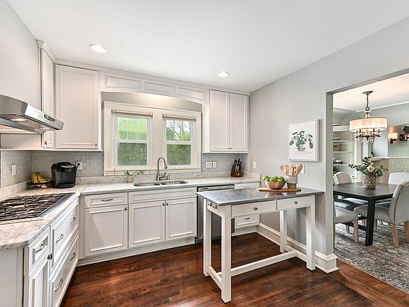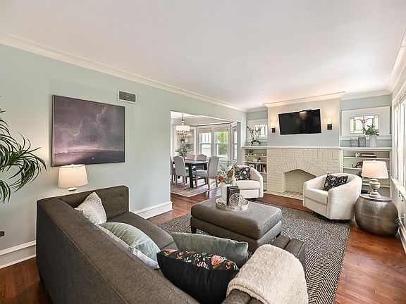 Prepare to fall in love with this stunning bungalow! Bright foyer greets you with room for a home office if needed. Large living room features a decorative fireplace flanked by stained glass windows & hardwood floors. Formal dining features coved ceiling & 2 built in china cabinets for added charm & storage. The kitchen will seal your decision with white cabinets, marble counters, stainless work island, chef's stove, stainless appliances. Updated main level bath w/classic white tile. Upstairs you'll want to escape to the oversized owner's retreat with sitting area & marble walk in shower & double sink vanity with quartz countertops. This one leaves you with nothing to do but invite friends over to show off your new home! Updated mechanicals, electrical, plumbing, & windows.
