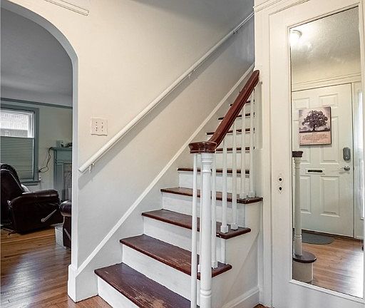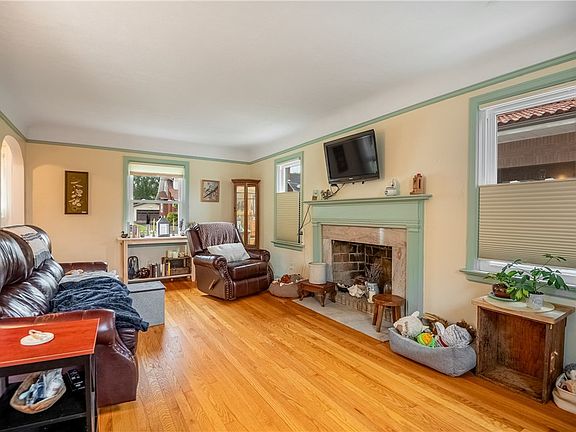 This home will wow you!! Graciously maintained home with so much care given throughout! The blue front door will certainly catch your eye, but first the newly poured concrete sidewalks will grab your attention! Entering this home, you will feel the warmth of a well cared for home with so many upgrades. You will love all the character that this home oozes!! Classic hardwood floors lead you into the cozy living room. A decorative fireplace ready for a gas insert makes for a great focal point. Updated eat in kitchen and a first floor laundry/ mudroom. You will also find a first floor bathroom with a shower. Upstairs, 3 bedrooms and a full bath complete the home. The built ins allow for storage space. The basement has been waterproofed. Roof 2015, 2013 replacement windows, HVAC 2012. Full basement with additional space to make a living area. Have a pup, the cutest doggy door will lead you to a fenced in backyard and a 24x24 garage (2014) Concrete patio and nicely paved driveway!
