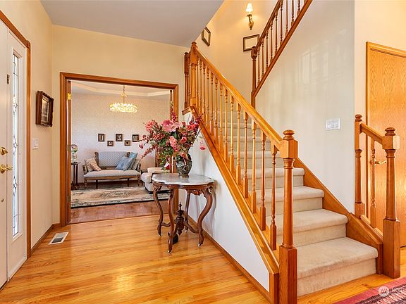 This stunning 6 bed 3 bath home is located in one of Lynden’s finest neighborhoods! Bathed in natural light, this immaculate beauty boasts high ceilings, a spacious kitchen with tons of storage, giant island, & eat-in area between kitchen and living room. Main level features a large bedroom, full bath, living room with gas fireplace & built ins, family room, formal dining room and grand entry. 4 upper bedrooms, Primary w/ en suite and balcony over looking backyard with mature landscaping and sport court. Add'l 530 sq ft Bonus room and 6th bedroom located over the garage, separate from other living areas. A/C, beautiful flooring, fantastic location! Too many amazing features to list… you’ll want to come out and see it for yourself.