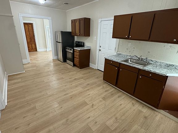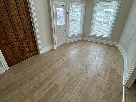 Be the first to live in this newly renovated three bedroom (all bedrooms have closets) one bath second floor apartment. New Stainless Steal Appliances, High efficiency furnace, roof, windows, bathtub with new ceramic tile, floors, LED lights, plumbing, electric, paint, floors, etc, to much to list a must see to truly appreciate. Large front porch and private second floor porch. Laundry hook ups inside apartment Pets okay City Parking Lot across the street One year lease, tenant pays for their own utilities.