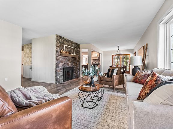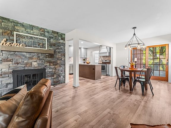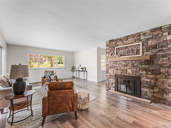 Your exhausting search for a four-bedroom home leads you here..to a place you will love and want to look no further! This red-brick beauty, topped with a modern metal roof, presents a timeless appearance that promises low maintenance, a recurring theme that follows throughout the interior. Step inside to a resounding “hello sunshine” as large windows invite sunlight to dance on the freshly painted walls and newly installed floors. Interaction among family and friends is as effortless as the flow of space between the kitchen, dinette, and living room. At its heart is a beautiful stone-faced fireplace for all to enjoy. Surrounded in a generous supply of earth-tone cabinetry, a striking dark finish center island provides abundant workspace and pantry storage keeps the kitchen clutter-free. The soft-close cabinet drawers and rich granite countertops add a touch of luxury.