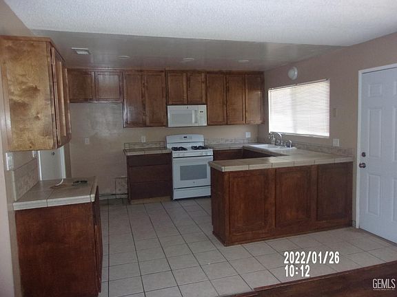 Cute Starter Home 3 bedroom 1/34 bath located in a highly desirable area of Taft. Nice open floor plan. Newer wooden look vinyl flooring in living/dinning room plus all 3 bedrooms. Kitchen had nice tile counters double sink, dishwasher, gas range with ample cabinets above and below counters. The tile floor in the kitchen runs into the adjoining laundry area. This home has nice ceiling fans in all rooms. It has a 2 car garage with alley access. Newer AC unit. The yard is nice size corner lot. The rear yard is fenced with a nice uncovered patio for entertaining . Property had been a rental and needs just a little TLC to make a lovely home. It won't last long so check it out today. It is located in the Airport Addition of Taft.