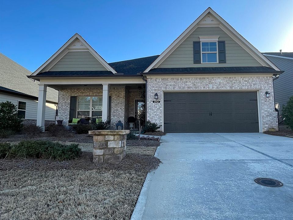 Stunning home, wonderfully maintained in sought after, 55+ gated community Brayden Park, loved and enhanced after closing by a professional interior designer! This home is ADA compliant! Situated on an open lot with clear backyard, this exceptional ranch plan boasts a large welcoming front porch, perfect for morning sunshine and coffee. 3 bedrooms, 2 bathrooms, large laundry/utility room with built in shelves. A well thought out chef's kitchen anchors the home with ample, quartz counter space, stainless steel appliances, upgraded lighting, generous built in pantry and plenty of storage! Across from the kitchen you're met with a charming, private lanai, which provides daylight for the kitchen and breakfast area, the perfect place for unwinding with an evening glass of wine. The open and airy family room with copious bright windows and dramatic vaulted ceilings is perfect for entertaining. The striking, upgraded fireplace serves as a focal point and creates a cozy retreat. Additional back patio with access to green space perfect for grilling. Grand master bedroom with impressive high ceiling and lovely upgraded moldings opens to beautiful ensuite bathroom with double vanity, walk in shower and oversized walk in closet. Finished stairs lead to bonus unfinished space with additional 664 sqft (potential fourth additional bedroom and bath/workspace/den) and large attic access. This home is heavily upgraded with finishes such as: Custom blinds throughout, added patio, upgraded fireplace, upgraded carpet, upgraded pendent lights, upgraded backsplash, upgraded hood vent, comfort seat toilets, smart home wired, upgraded paint, upgraded appliances, upgraded faucets, upgraded tile...the list goes on! This home is very special! The HOA fee is low ($215 a month) and INCLUDES lawn maintenance, garden maintenance and trash. On top of being easily accessible to I-575 it is also conveniently close to shopping, gas, groceries. The wonderful neighborhood features 2 pickle ball courts, a beautiful clubhouse with catering kitchen and is known for its social calendar!