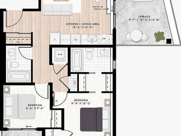 Filled with natural lightIn-suite laundryPrivate outdoor spacesBalcony off the bedroom