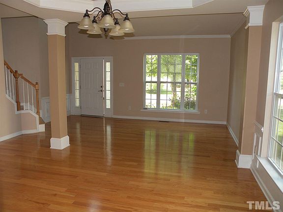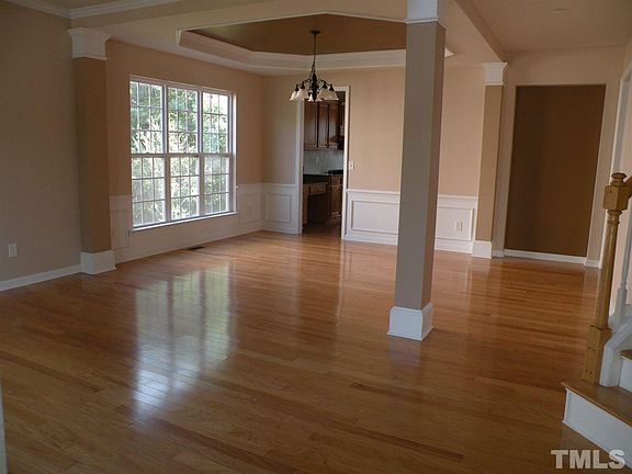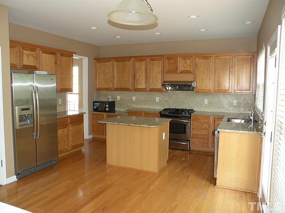 Interior walls freshly painted! Photos will be updated soon. 5 bedrooms/3.5 Baths. Finished basement! Huge, flat backyard backing to woods. Hardwoods all 1st floor. Large family room w/ lots of windows. Gourmet kitchen w/ granite counter tops and backsplash, stainless steel appliances, maple cabinets. 1st floor study. Huge bonus room in basement. Large deck. Large community center w/ clubhouse, pools, tennis courts, and playground. Very convenient to RTP, RDU, shopping, and receation. Minutes to 540, NC55/US64 and Beaver Creek Commons. Videos available.