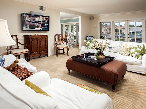 Spacious 72 foot wide waterfront estate in Dover Shores with direct access to your private boat dock that has additional room for two side ties. This 4 bedroom, 3 bath home has a large front yard as well as a huge backyard, perfect for entertaining. The dramatic two story entrance sets the stage for this wonderful home from a remodeled kitchen with the popular Carrera marble countertops and glass tile backsplash to the formal dining room with hidden storage and wet bar, updated living room with built-in bookcases and cozy fireplace and 1 bedroom set up as an office or den. All the main living spaces open thru French doors, to the expansive backyard and waterfront patio that includes a built-in BBQ, a private spa with a water feature plus a mini orchard with mature fruit trees. The oversized garage with lots of storage space, has enough room for a fleet of fishing rods plus extra space for bikes, surfboards and other water sports equipment. Dover Shores offers two private beaches, quiet waterways that allow easy access to the coves of the back bay, the Newport Aquatic center and so much more. In addition to all of this, you can walk to all the shops and restaurants located in the Westcliff shopping area, Castaways park and walking trails around back bay.