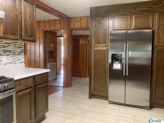 "A Sweet Little Home" conveniently located In Camp Sibert. Open and spacious Living room, large Den or Rec room. Kitchen features ample wood cabinets, stainless steel appliances, including gas range, dishwasher and Refrigerator. Laundry room, two baths, one with walk in tub. Great floor plan. Rear deck, storage building and fenced in back yard. Single carport.